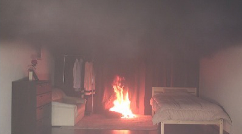| そして、火災時には自動放水します。 前田バルブ工業は、住宅を再現した試験を繰り返して安心できるシステムに仕上げました。 |