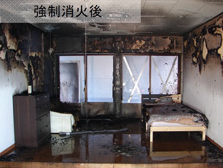 米国消防管理(USFA)では、火災が起きたときの家財損失額も重要視しており、スプリンクラーを設置し初期消火をおこなうメリットと部屋をまたがない火災でも消防が到着し建物全体に放水を開始するデメリットをウォーターダメージとして損失額をうたっています。
